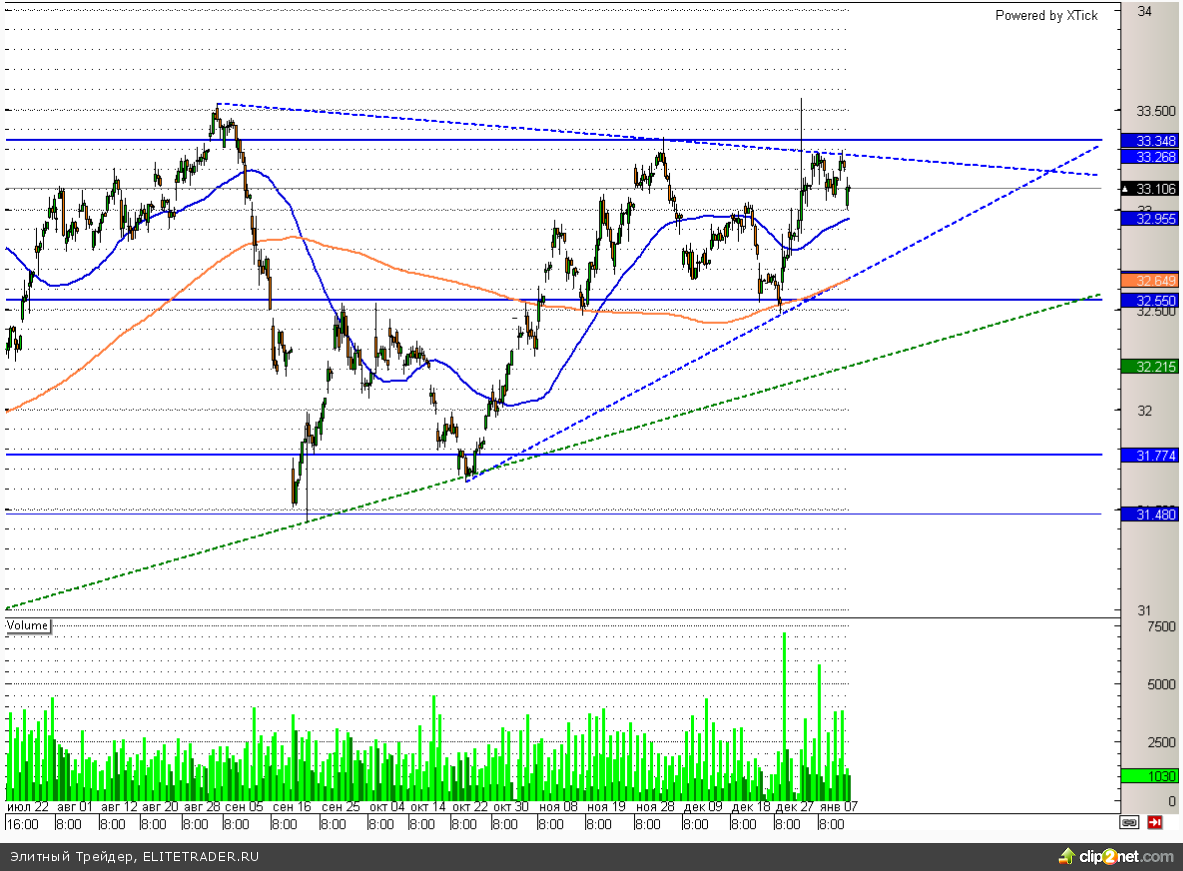 В свою очередь, с технической точки зрения данная валютная пара уже неделю торгуется в диапазоне между отметками 33 и 33,3. Пробой любого из данных уровней может привести к ускорению движения в направлении пробоя, но для этого могут понадобится дополнительные драйверы.