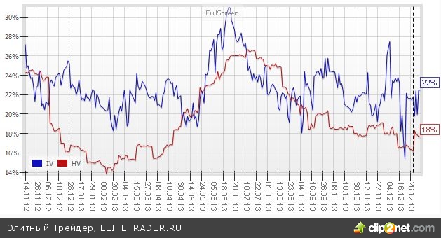 Напомню, подразумеваемая волатильность устанавливается самими участники торгов и обычно классифицируется как индикатор страха.