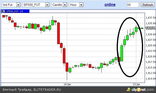 14.01.2014 Фьючерс на S&P протестировал 1810 и отскочил. Что интересного на 1810? Это первая поддержка, которая сформировалась, горизонтальный уровень + диагональная поддержка. Выпустили пар немного, присели отдохнуть. Дали глотнуть воздуха зажатым в тисках шортистам. Смотреть надо за этой поддержкой, возможно в нашу сессию ее протестируют еще раз, если поддержка устоит, то мы вскоре увидим выход на 1850+.