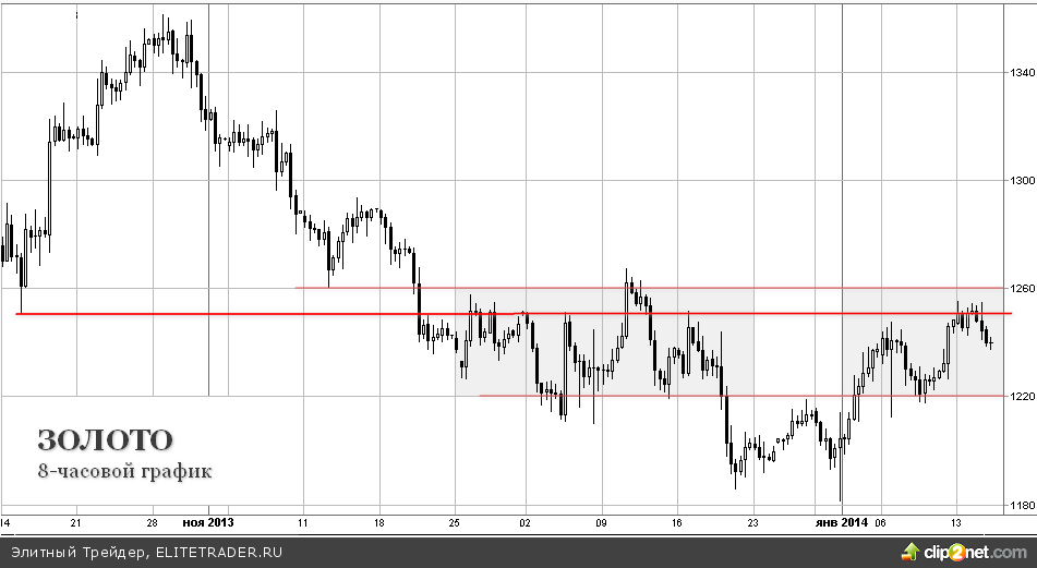 После нескольких подряд дней роста на рынке золота образовался откат, так и не позволивший цене уверенно закрепиться выше психологического уровня $1250 за унцию. Инвесторы предпочли золоту рынок акций после того, как опубликованные вчера данные показали прирост объема розничных продаж в США выше прогнозов экспертов (за декабрь).