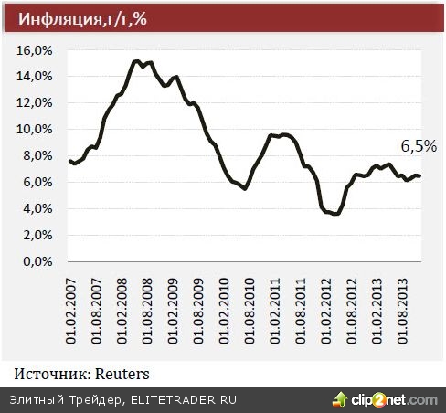 Среди возможных факторов, способных стимулировать российскую экономику довольно часто упоминается снижение ключевой процентной ставки Центральным Банком. Однако на фоне задачи снизить инфляцию к концу 2014 года до 5%, ожидать смягчения денежно-кредитной политики не приходится. Данные по итогам 2013 года показали, что рост цен составил 6,5% (6,1% - год назад, минимум в новейшей истории России), несмотря на цель ограничить инфляцию 6 процентами.