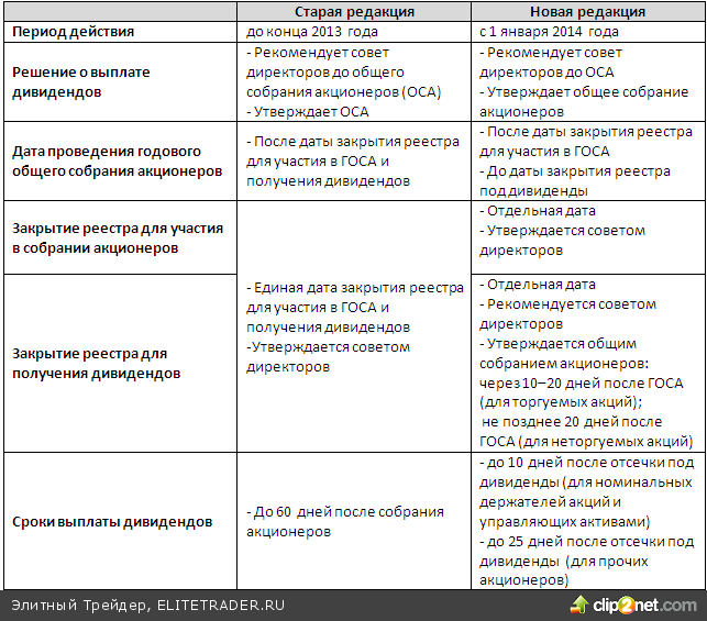 Таким образом, в прошлое уйдут такие вольности, как закрытие реестра под дивиденды в день публикации решения совета директоров или вообще задним числом. Это автоматически лишало некоторых акционеров возможности получить дивиденды, при этом другим приносило неожиданные бонусы.