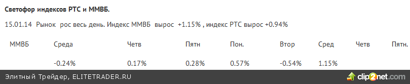 Модельный трейдер, назовем его Кропоткин, предполагает позитив на открытии, хотя ожидал негатива. Поэтому он ждет попыток продать рост, но тогда во второй половине могут активироваться снова покупки. День 15 января оставил позитивное впечатление. Поддержки РТС 1347.1..1400.4 ММВБ 1447.9..1483.5 (ММВБ получил стимулы возвратиться к 1500, то есть продолжить заполнение новогоднего гэпа. (закр. 30.12 1504.08))