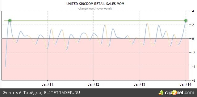 Федеральное бюро статистики Великобритании опубликовало сегодня отчет, согласно которому объем розничных продаж в декабре подскочил на 2.6% по сравнению с данными ноября, что стало максимальным месячным ростом за последние 4 года. Средний прогноз экспертов колебался в районе +0.2%/+0.4%.