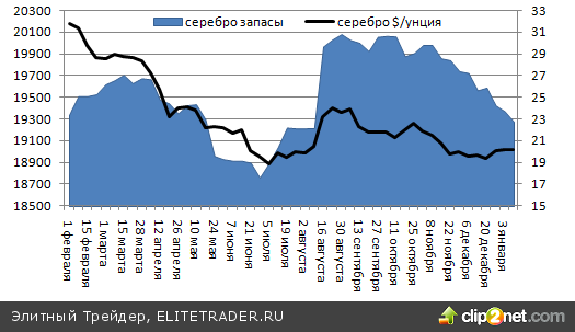 За две недели к 10 января запасы серебряных биржевых фондов сократились на 149,9 тонн, а падение котировок 14 числа отчетного месяца привело к потерям в размере 60 тонн.