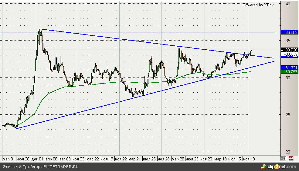 Рубль теряет более 10 копеек по отношению к доллару. Текущую ситуацию по данной валютной паре можно охарактеризовать как небольшую панику после пробития максимальных значений за последние 2 года. При этом фундаментальные предпосылки для ослабления рубля в краткосрочном периоде уже практически полностью исчерпали себя. Поэтому в случае если на ближайшем заседании ФРС мы не увидим дальнейшего сокращения стимулирующих программ, российская валюта сможет показать неплохой отскок в район 33,2-33,5. В свою очередь начало налогового период в России и коррекция нефтяных котировок от трендовой линии также должны поддержать рубль в ближайшем времени. Таким образом, падение может на некоторое время приостановиться или даже сменить краткосрочным отскоком. Впрочем, пытаться поймать этот отскок я бы не советовал.