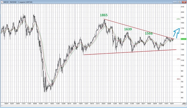 Пробиваем нисходящий тренд. Далее предыдущие годовые пики, пробиваем хотя бы один.