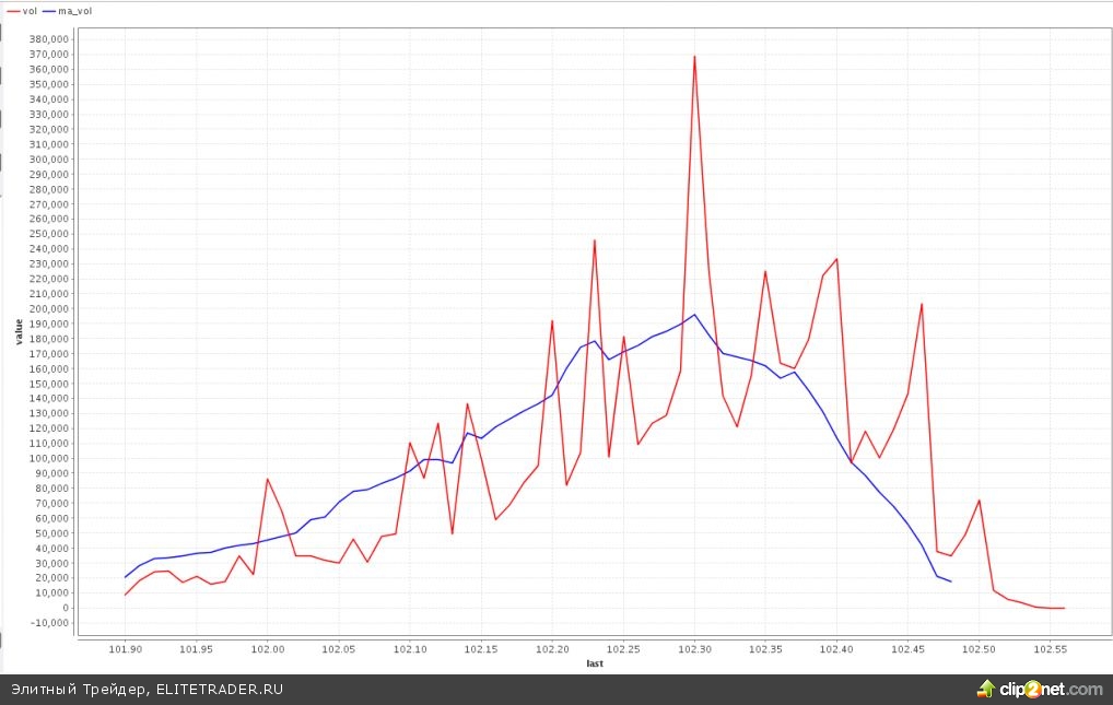 Вчера были по 102 рубля, сегодня по 102, руб. накрутили счетчик на 370 тыс. лотов. Теперь тщательнее надо следить, как ценовой моментум отработает эту зону (с оговоркой на возможный «пропил» +- 1-2% вокруг нее).