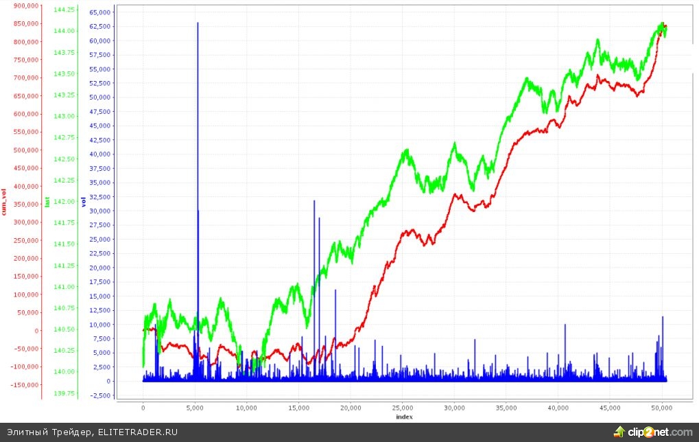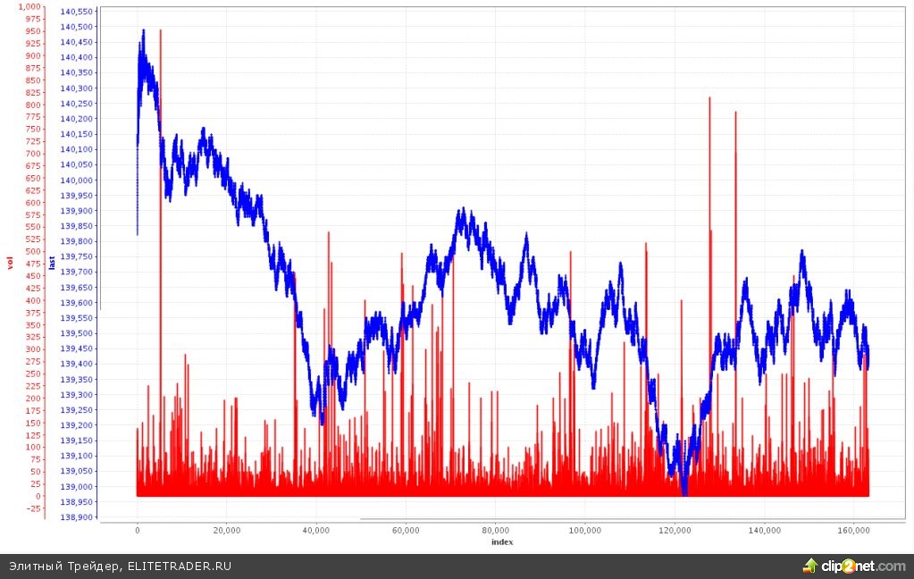 Утром сразу же после спайка до 140 500 пропустили самый крупный объем дня. Порядка 1000 контрактов. Потом периодически дробили по стакану как зайчики из рекламы батареек Энерджайзер. Одним словом, дельта-хеджеры сегодня были очень активны. При этом внутридневной момент остался за продавцами. Следовательно, общий вывод может состоять в том, что дельта-хеджеры преимущественно продавали инструмент.