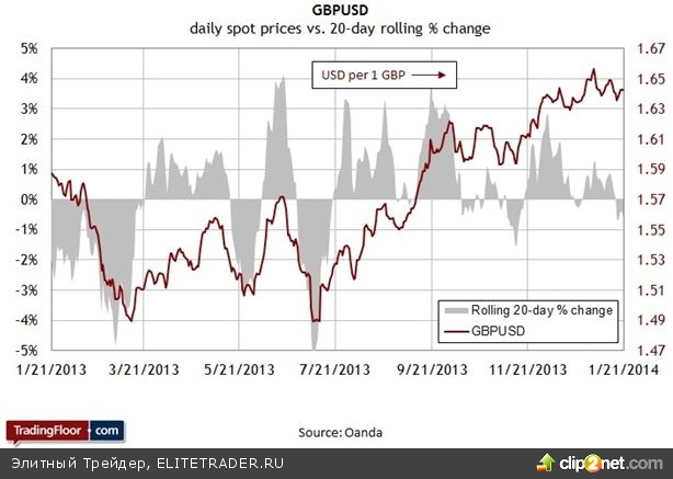 Принимая во внимание благоприятную статистику, которая выходит в Великобритании в последнее время (и растущие ожидания того, что ставки скоро будут увеличены), укрепление курса фунта в эти месяцы не вызвало удивления. Действительно, по сравнению с минимумом, установленным в июле прошлого года, курс фунт/доллара поднялся почти на 10%. Правда, в этом месяце рост остановился, но «быки» могут увеличить покупки британской валюты, если отчет о состоянии рынка труда принесет с собой хорошие новости. Что касается протокола заседания Банка Англии, то некоторые аналитики ожидают увидеть в протоколе доказательства того, что позиция банка в отношении курса политики развивается. Если британские власти решат отказаться от установленного ориентира по безработице в 7%, это будет настоящим шоком. Но даже если это возможно, вряд ли мы увидим открытое обсуждение этого вопроса в сегодняшнем выпуске. С другой стороны, все будут читать между строк в поисках определенности, учитывая воодушевляющие экономические показатели.
