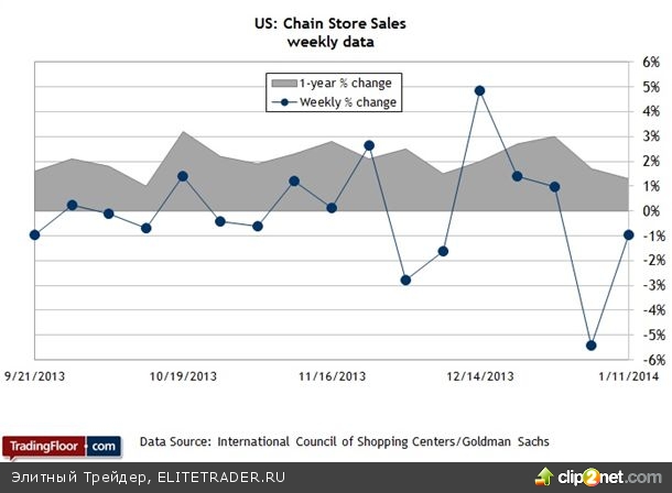 Продажи в сетевых магазинах в США (12:45 GMT): Экономисты повысили свои прогнозы по экономике США на 2014 год, однако самые последние опубликованные данные носили смешанный характер. Например, на прошлой неделе вышел отчет о новых закладках под строительство домов за декабрь, который продемонстрировал сокращение строительства нового жилья. Кроме того, результат прироста занятости в отчете за прошлый месяц оказался самым низким за последние три года. Розничные продажи продолжают расти, хотя к концу 2013 года темпы роста замедлились. Публикуемый сегодня еженедельный индекс продаж в сетевых магазинах предоставит участникам рынка дополнительный контекст, чтобы они могли оценить, чего им следует ожидать от официального отчета правительства о розничных продажах за январь, публикация которого запланирована на следующий месяц.