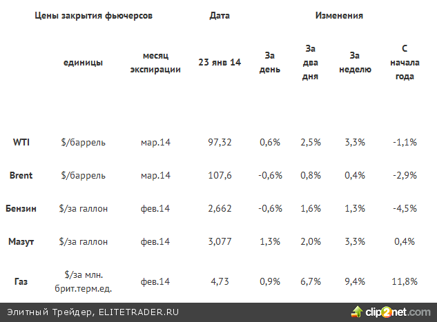 А вот цены на нефть и нефтепродукты за последний день изменились незначительно. Цена на американскую нефть марки WTI продолжила рост предыдущих дней и прибавка за неделю составила 3,3%. По европейской нефти марки Brent ситуация обратная. Там на фоне начавшейся конференции по Сирии (Женева-2) преобладали ожидания разрядки напряженности, и цены за истекшие сутки немного припали. В результате за неделю изменения оказались минимальными.