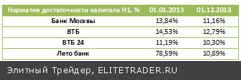 При этом стоит обратить внимание на динамику норматива достаточности капитала. У всех банков группы зафиксировано снижение этого показателя. В наиболее опасной зоне находится ВТБ24. Однако уже на днях было объявлено об увеличении капитала, которое не превысит 30 млрд руб. и увеличит норматив Н1 на 1,4-1,5%. Докапитализация Лето Банка в силу его размеров и положительных результатов также не вызывает опасений. Однако в целом следует ожидать увеличения капитала у всех представителей группы.