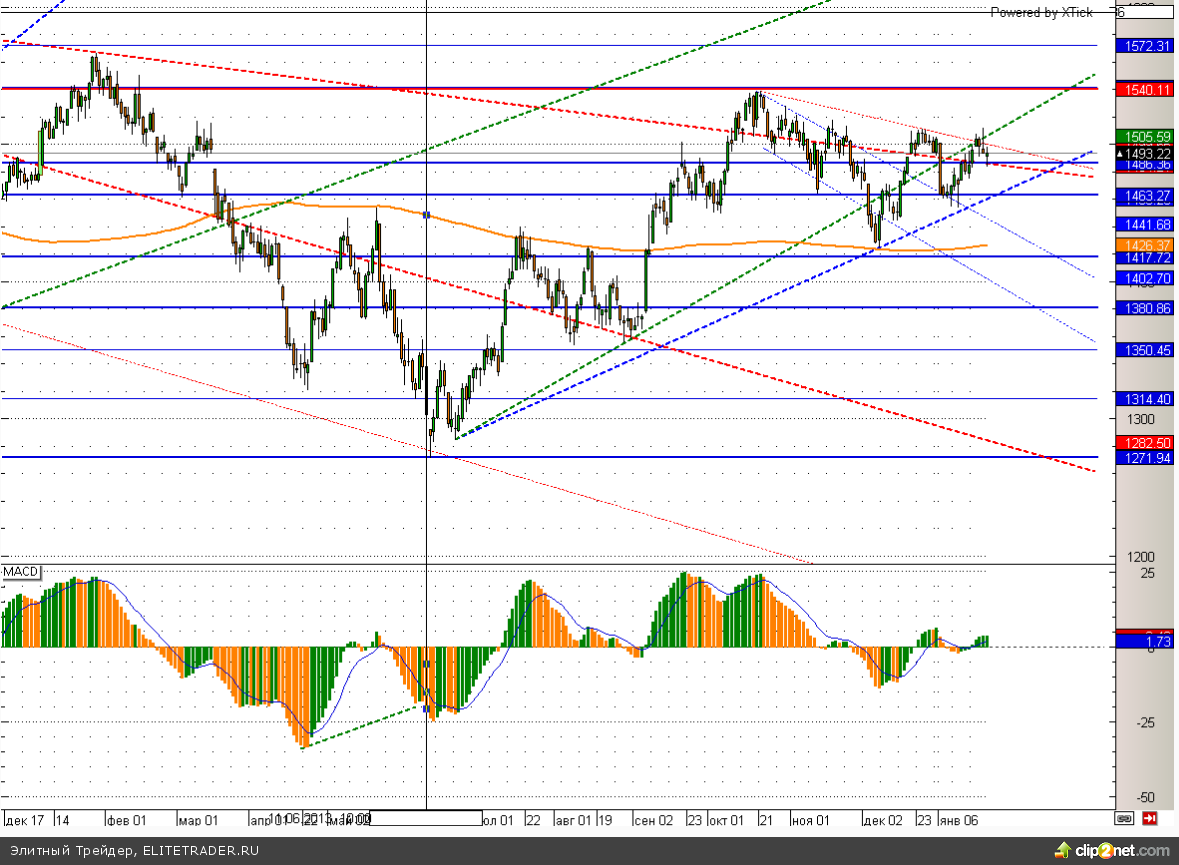 Российский рынок завершил торговую сессию пятницы на отрицательной территории. При этом ММВБ сегодня протестировал нисходящую трендовую линию вблизи 1485, но, в конечном счете, отскочив от нее, закрыл день выше 1490 пунктов. Теперь рост имеет все основания, на возобновление особенно учитывая перепроданность российского фондового рынка.