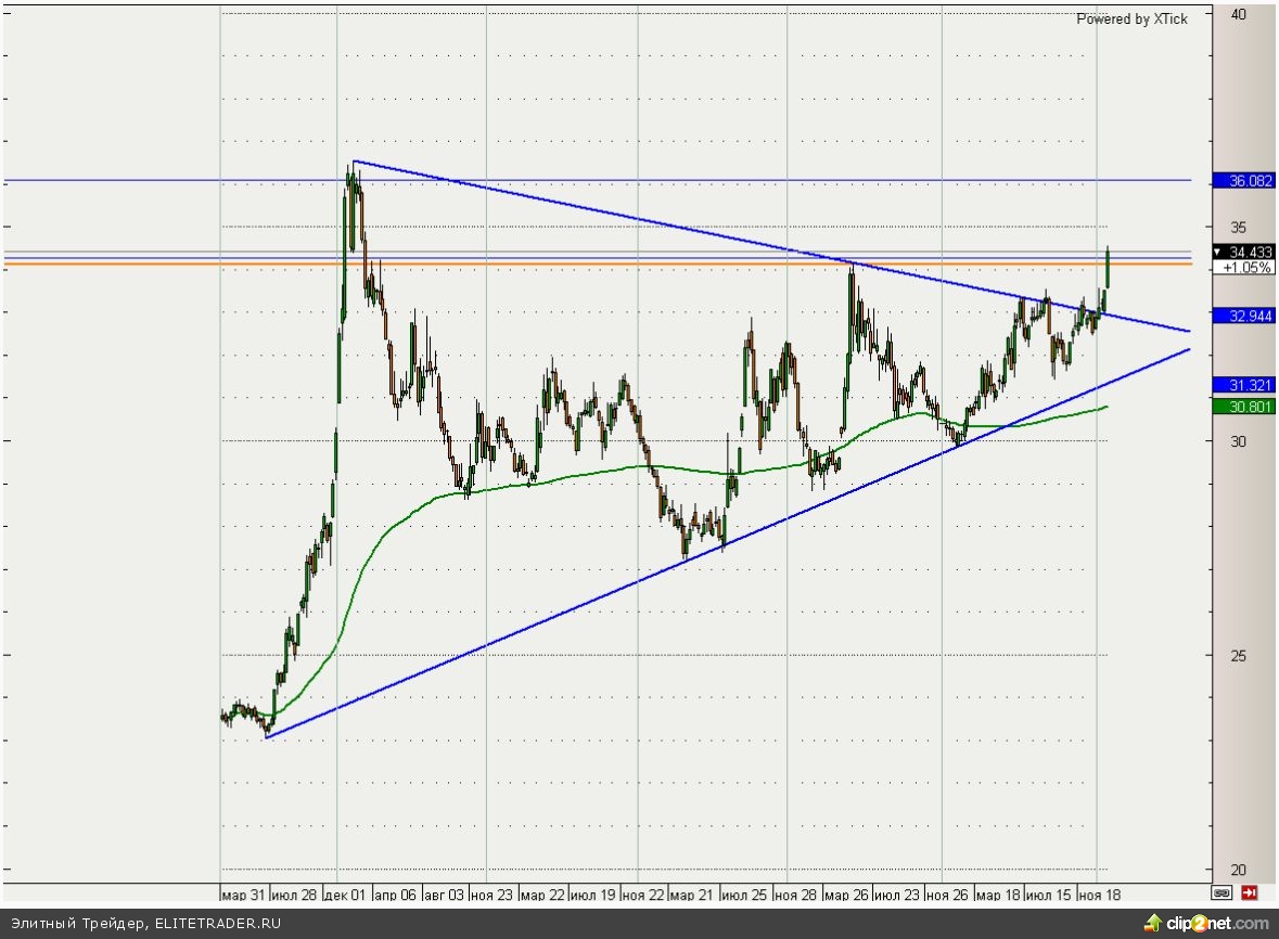 Между тем пара доллар/рубль продолжает расстраивать участников своим паническим движением. Сегодня рубль снова обновил многолетние минимумы и закрепился выше отметки 34,1. С фундаментальной точки зрения такое движение должно в скором времени иметь значительную коррекцию, но с технической преград на пути доллара пока нет.