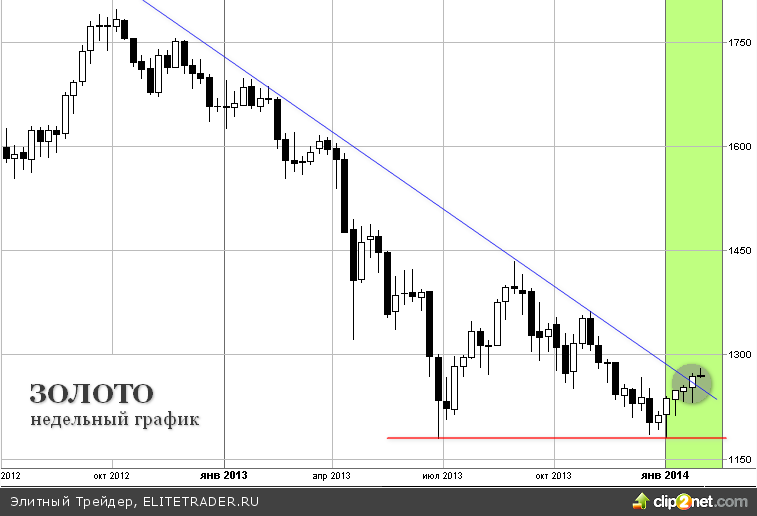 Рост цен золота за минувшую неделю составил порядка 1.2%, что стало пятым подряд недельным закрытием в плюс. Суммарный прирост с 20 декабря 2013 года составляет более 5%.