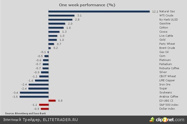 Все это сыграло на руку инвесторам в золото: цена металла на физическом рынке, а также акции золотодобывающих компаний возросли. При этом сырьевые товары, зависящие от экономического роста, например промышленные металлы, подешевели. Трудности испытывала и нефть сорта Brent, в то время как американский энергетический сектор не поддался негативным настроениям, так как на первые план вышли события, происходящие на внутреннем рынке, а именно увеличение пропускной способности трубопроводов, пролегающих от Среднего Запада США до побережья Мексиканского залива (положительный фактор для нефти WTI), в сочетании с заморозками, которые способствовали росту цен на мазут (ULSD) и, в особенности, на природный газ.