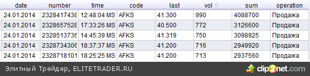 Сильных рывков в объемном акселераторе АФК Системы в пятницу не было. Об этом свидетельствует равномерное распределение объемов по сделкам. Наиболее интересными в пятницу стали объем в 990 лотов по 41,3 рубля в 12-48: