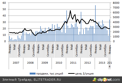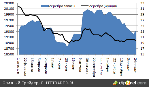 Самыми стабильными на этом фоне выглядели позиции серебра. Монеты активно покупали пользователи, в результате чего объем продаж Американского монетного двора достиг отметки 4516 тыс. унций, максимальной с января 2013 года, а отток капитала из ETF-фондов на неделе к 24 января сменился притоком в 122,6 тонн.
