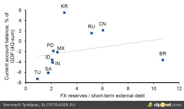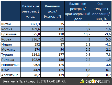 Описанные события позволяют говорить о том, что рынки развивающихся стран разделены четкой гранью. Исходя из таких показателей, как величина валютных резервов и их соотношение с краткосрочным долгом, а также доли счета текущих операций в ВВП и внешнего долга в размере экспорта можно говорить об устойчивости той или иной валюты к внешним воздействиям.
