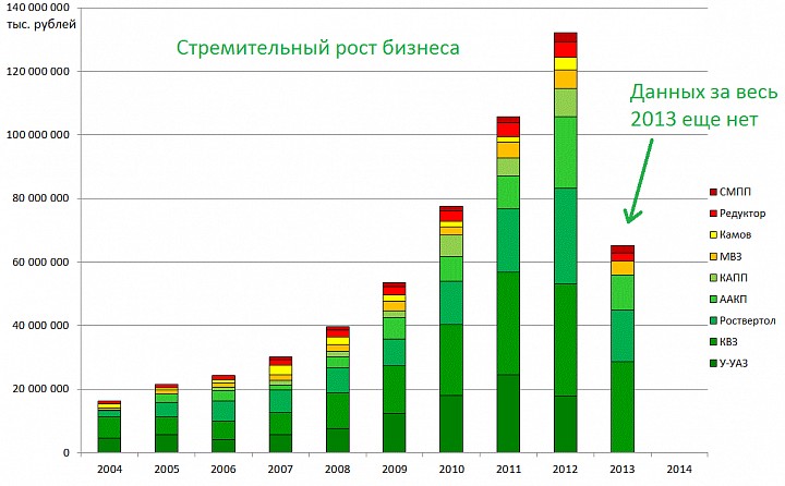 Многие еще помнят оферты в КВЗ и У-УАЗе. Всего у ВР 10 дочек. Это 5 заводов, 2 КБ и 3 производителя комплектующих.