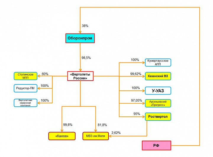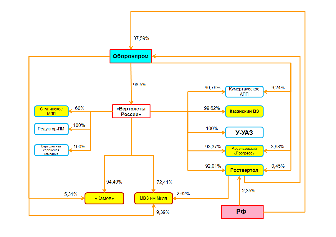 4. Важным шагом консолидации активов в вертолетах и двигателях была передача госдолей в Роствертоле, Сатурне и Салюте Оборонпрому. Последние двое в ОДК. Пока непонятно завершена она или нет, тем не менее без этого как уже писал ранее о выкупе 100% в том же Роствертоле речь не идет. По приблизительным расчетам доля ВР в Роствертоле после допки сократится до 81,4%, а Оборонпрома с учетом госдоли вырастет до 13,6%. Как раз 95%.