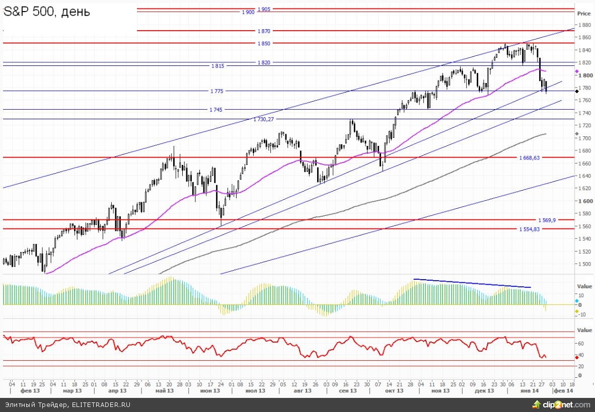 При этом данный девиз казался более оправданным в текущей ситуации ввиду того, что ожидания сокращения стимулирования на $10 млрд. были заложены в рынок еще в начале года. Аналитики даже после слабого декабрьского отчета по рынку труда сходились в подобном мнении касательно действий ФРС. И все же по факту выхода стейтмента SnP500 обновил месячные минимумы. Причиной этого импульса, вероятно, стало в большей степени неожиданное улучшение оценки регулятором состояния экономики.