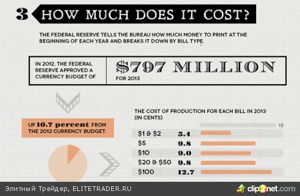 В 2013 году ФРС выделила на печать денег $797 млн. Это на 10,7% больше, чем в 2012 году.