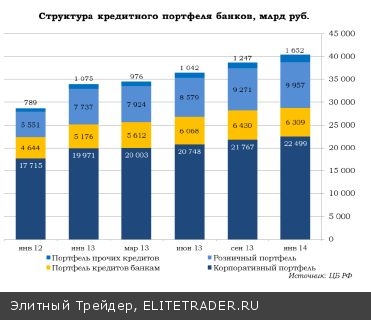 В Банке России (зампред Михаил Сухов) ждут роста корпоративного портфеля банков на 10%, розничного – не более чем на 25% за счет снижения доли необеспеченного потребительского кредитования по завышенным ставкам.