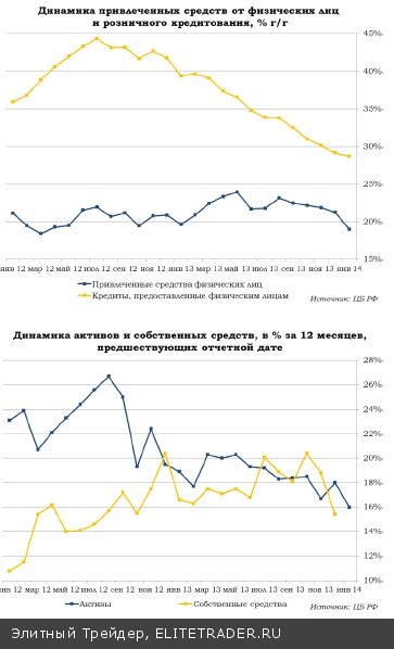 «Чистка» банковского сектора не сказалась на доверии населения. По крайней мере, так считают в ЦБ, в частности зампред ЦБ России Михаил Сухов. Данные по притоку средств населения на депозиты это подтверждают, но только частично. Обычный для конца года всплеск активности вкладчиков в этом году совпал с замедлением темпов роста экономики. В итоге в декабре объем средств физических лиц на депозитах увеличился на 4,3% к ноябрю, в то время как в предыдущие два года фиксировались более высокие значения в 6,1% и 7,3%. Годовые темпы опустились до уровня в 19,0%, что не наблюдалось с марта 2012 года. Об изменении поведения населения свидетельствует также увеличение доли вкладов до востребования и сроком до 30 дней – на них пришлось 466 млрд руб. из 696,7 млрд руб. прироста средств.