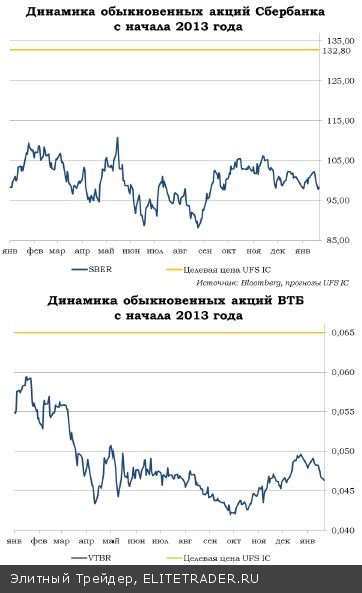 Банк ВТБ еще не последовал примеру «Сбербанка» и отчетность по РСБУ пока не представил. Согласно опубликованным на сайте Банка России данным, чистая прибыль банка в 2013 году выросла в 1,6 раза до 35,1 млрд руб. благодаря дивидендам в размере 81 млрд руб., выплаченным дочерними банками. По МСФО по итогам минувшего года ВТБ планирует показать чистую прибыль в размере 100 млрд руб.