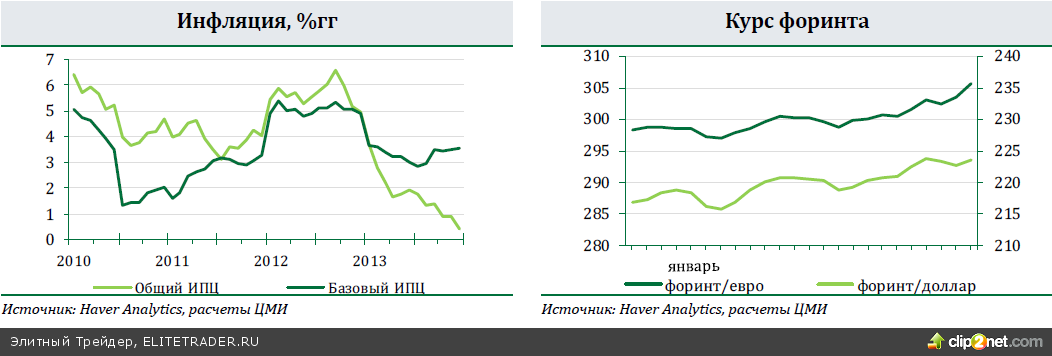 Венгерский форинт слабеет в этом месяце, как и валюты прочих развивающихся стран. Ожидаемое сворачивание ФРС программы количественного смягчения может оказывать давление на форинт на протяжении всего 2014 года. До парламентских выборов давление на форинт ожидается и со стороны дальнейшего смягчения денежной политики.