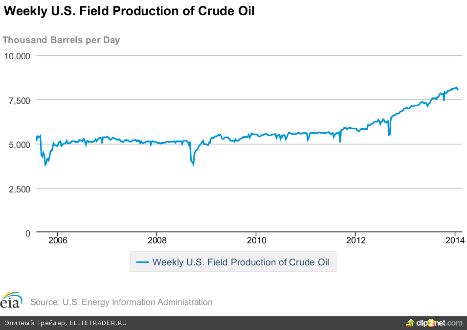 Согласно полученным данным, добыча в США еще немного сократилась и в данный момент составляет 8,044 млн. баррелей в день.