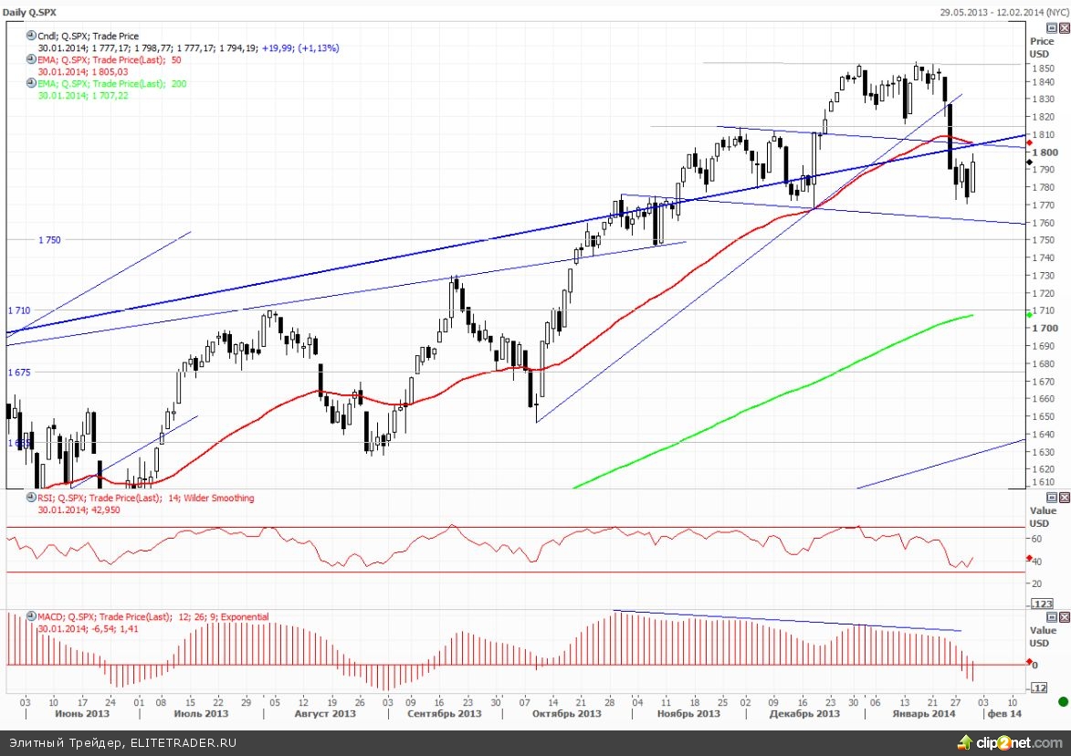 Негатива добавили ряд корпоративных отчетов, включая финрезультаты самой дорогой компании мира - Apple. Собственно акционеров расстроили не сами результаты, а взгляды компании на будущее. На первый квартал 2014 года прогноз по выручке был дан на уровне $42 млрд.-$44 млрд., тогда как на Wall Street в связи с долгожданной сделкой с китайской China Mobile в среднем ожидали продаж на уровне $46 млрд. Акции Apple за день потеряли порядка 8%.