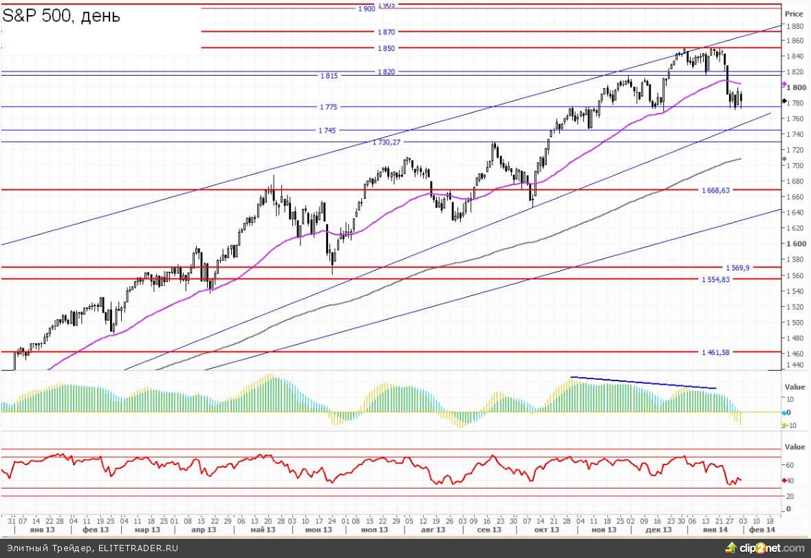 Американскому рынку акций и в частности индексу широкого рынка SnP 500 пока удается избегать полномасштабного обвала. Сейчас идет классическая фаза дистрибуции, в рамках которой smart-money постепенно выходят из рынка. Если взглянуть на график, то сейчас просто напрашивается продолжение распродаж с ускорением. И кстати забавный факт: ситуация в SnP 500 очень сильно напоминает формацию, которая складывается в акциях Магнита, если конечно такое сравнение уместно. Трудно сказать, на сколько именно может растянуться эта консолидация под максимумами, однако ее драматичный итог сейчас выглядит практически неизбежным. Тем не менее все-таки напомню, что если SnP 500 снова удастся подняться над областью 1815-1820, то при таком раскладе среднесрочная цель сразу же будет переставлена в район 1870-1875.
