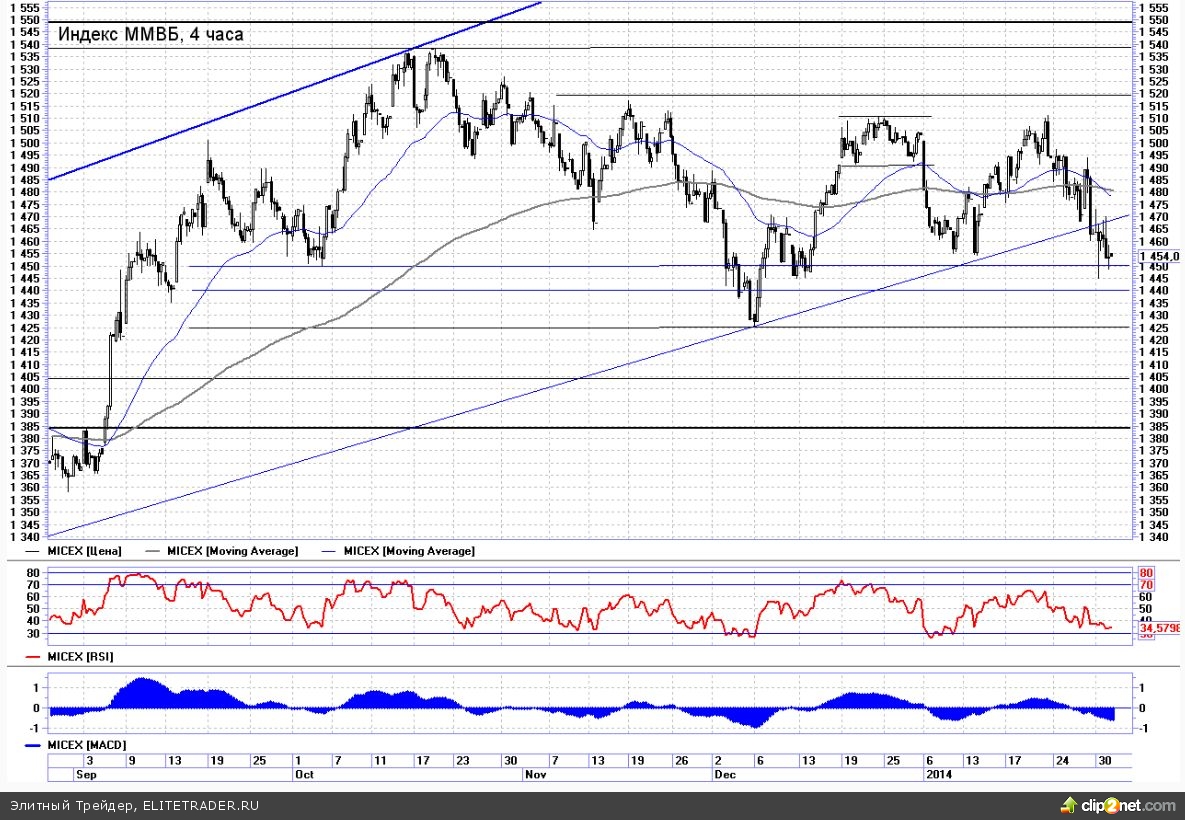 Индекс ММВБ понизился на 0,60% до 1454,45п.