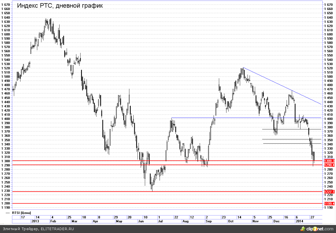 Прошлая неделя на российском рынке завершалась на пограничных уровнях. Долларовый РТС закрывался около поддержки 1290-1300, которая выступает последним более-менее важным рубежом, отделяющим нас от движения в сторону главных уровней последних лет 1230-1200 пунктов. Ну а на ММВБ котировки все также пытаются удержаться выше зоны 1440-1450. Именно эта область в данный момент разделяет два полярных сценария развития событий на рынке.