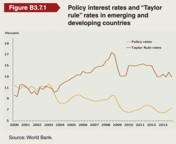 Многие из этих стран проводили слишком мягкую политику в последние годы, что и видно из графика Тейлора Рула, демонстрирующего монетарную политику развивающихся рынков, данные же были собраны Всемирным Банком. Эти страны стали начали успокаиваться, воспринимая глобальную ликвидность, как должное, допуская худшие формы кредитных пузырей.