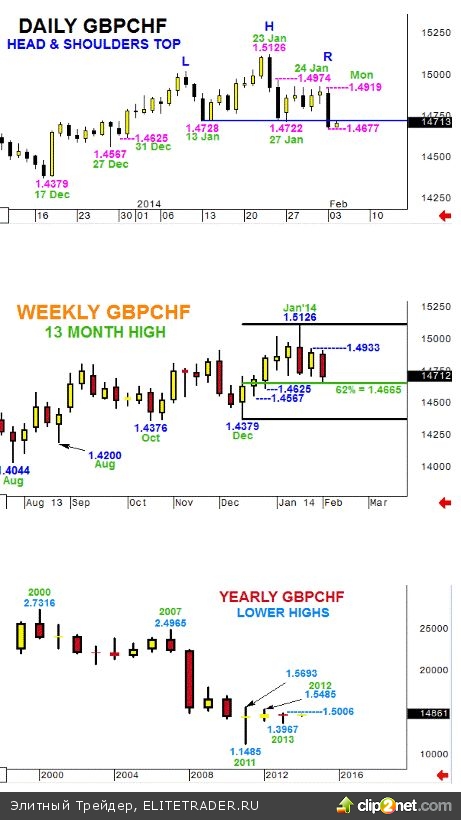 GBPCHF на прошлой неделе сформировал разворотную медвежью модель “голова и плечи”, а вчера пробил линию шеи, резко испортив техническую картину в кроссе. Цены могут вернуться к линии шеи, открыв перед нами выгодную возможность для продажи.