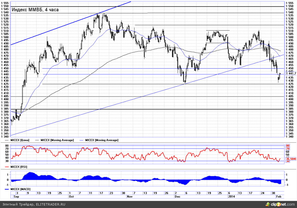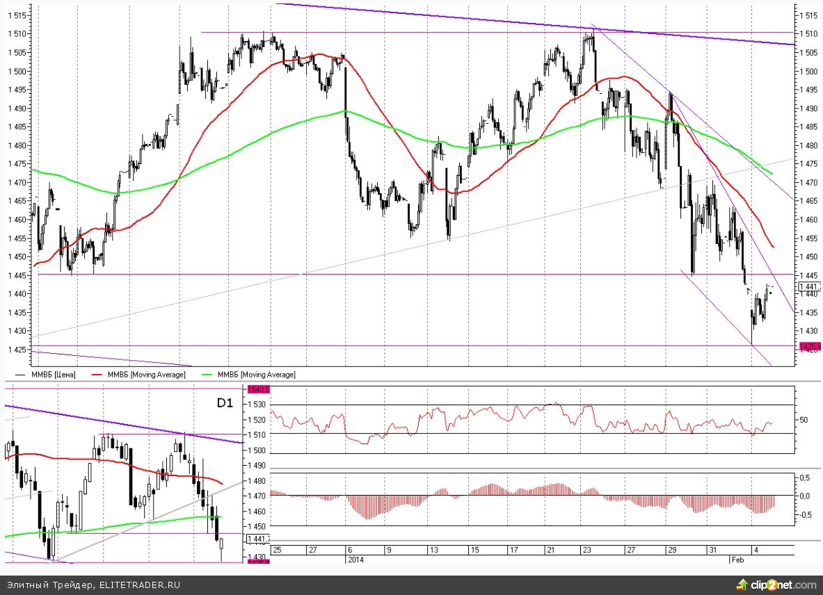 В то же время отмечу, что в случае обновления вчерашних минимумов (1425) далее цель по ММВБ сразу же будет переставлена чуть ниже отметки 1400.