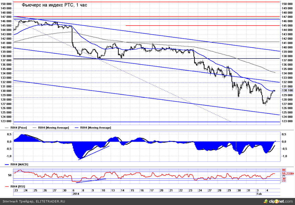 В широком нисходящем канале развивающемся от октябрьских максимумов прошлого года еще есть небольшой потенциал снижения к 1405, то есть 50%-ому коррекционному уровню по Фибоначчи относительно восходящей волны от июньских минимумов. Однако в случае подъема выше 1445, который ожидается на сегодняшней сессии, пока индекc будет удерживаться выше данной отметки перспективы будут скорее позитивны в плане развития отскока, вполне реалистичной целью которого выглядит подъем к 1470, то есть отработка 50%-ой коррекции к снижению от максимумов января. На пути к этим уровням индексу еще предстоит преодолеть сопротивление 200-дневной скользящей средней.