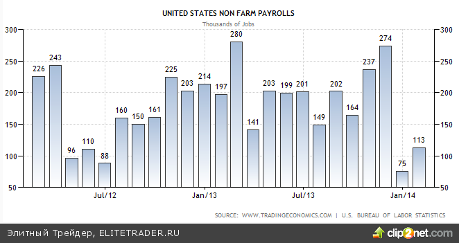 Уровень безработицы в США упал в январе до 6,6%, но количество рабочих мест вне сельскохозяйственного сектора увеличилось всего на 118 тыс. при средних прогнозах на уровне 185 тыс.