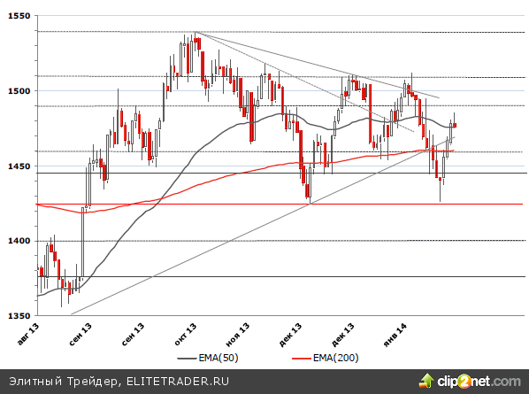 В понедельник, 10 января, индекс ММВБ в течение большей части сессии держался в небольшом «плюсе» относительно предыдущего закрытия, в диапазоне 1480 – 1485 пунктов. Однако в последние два часа торгов он отступил на отрицательную территорию, на закрытие составив 1476,28 пунктов (-0,15%).