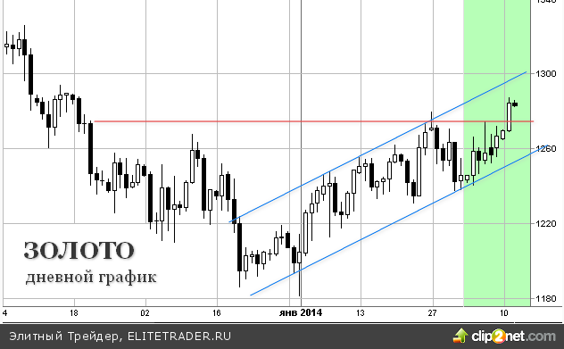 На графике золота мы видим «красивое» развитие восходящего импульса, вчерашний рост позволил обновить двухмесячный максимум и открыл дорогу к психологической отметке $1300 за унцию.