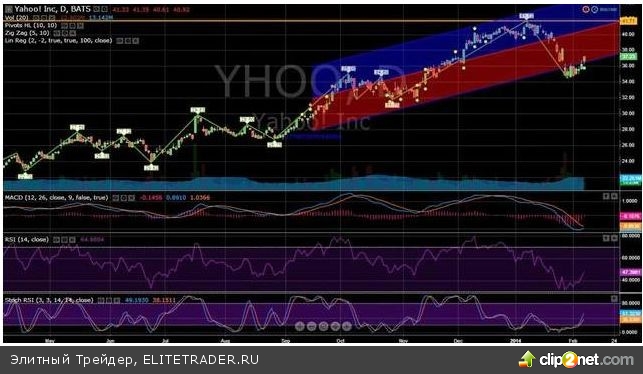 YAHOO– NASDAQ, IPO –N/a, Индекс - SP500 Тикер –YHOO, Сектор – Технологии, Сфера - Интернет провайдер. Страна – США, Капитализация -38,67 млрд. $ , Средний объем - 17,78 млн. акций за торговую сессию, 52min -19,93$, 52max-41,72$