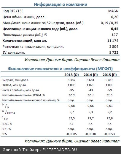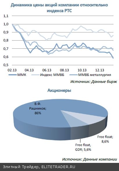 С учетом того, что цены на стальную продукцию в 2013 г. снизились, а закупочные цены на железную руду выросли к концу года, можно быть уверенным в уменьшении выручки и рентабельности ММК по итогам 2013 г., что будет несколько хуже ожиданий консенсус- прогноза и может спровоцировать снижение курса акций после публикации отчетности в апреле 2014 г.