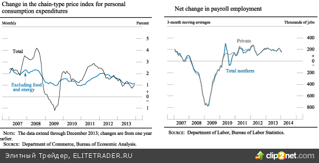 В своем выступлении новоиспеченный глава ФРС Джанет Йеллен подчеркнула важность преемственности подхода принятого ее предшественником Беном Бернанке, подтвердив все ранее обозначенные тезисы о том, что сокращение QE продолжится размеренными темпами, несмотря на слабость последних отчетов с рынка труда, где Феду требуется больше информации для принятия решений. То есть в целом, ФРС настаивает на улучшении ситуации с занятостью за последние полгода, и пока ее не беспокоит краткосрочные изменения показателей, равно как и наблюдавшаяся напряженность на валютных рынках развивающихся стран.