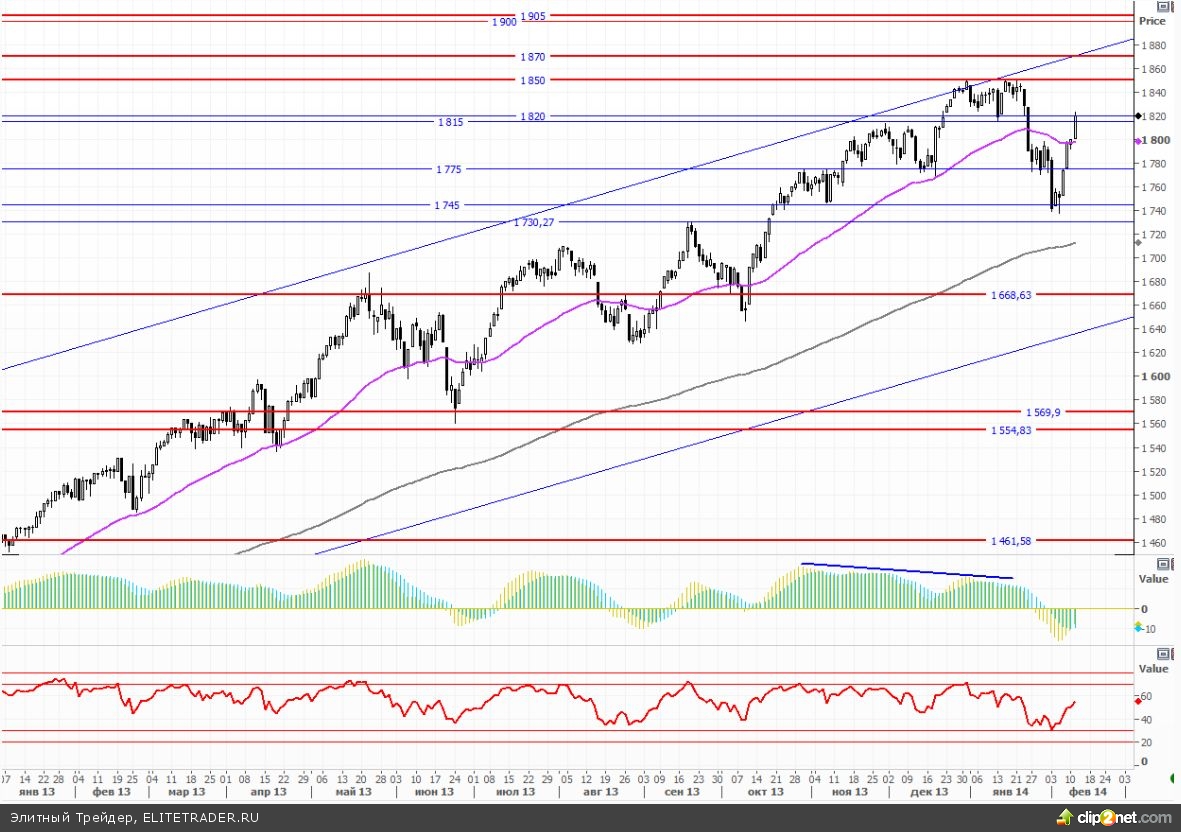 Ближайшие уровни сопротивления: 1820 / 1850 / 1870-1875 / 1900-1905
