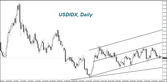 Вчера фунт стерлингов (GBPUSD) заметно укрепился (рост на графике) после опубликования квартального обзора от Банка Англии. В нём он повысил прогноз роста ВВП своей страны на текущий год с 2,8% до 3,4%. По мнению Банка Англии, в начале следующего года ожидается снижение безработицы до 6,5% с нынешних 7%. После этого состоится повышение учётной ставки с текущего уровня 0,5%. Инвесторы теперь рассчитывают, что к концу 2015 года она может подняться до 1% и до 2% в течение трёх лет. Напомним, что в декабре инфляция в Великобритании опустилась до ключевого уровня 2% впервые за четыре года. Низкая инфляция и безработица являются основными факторами для снижения учетной ставки Банком Англии. Следующее важное для фунта стерлингов событие ожидается только 18 февраля. Выйдет инфляция за январь. Отметим, что согласно планам Банка Англии, в марте текущего года индекс потребительских цен должен быть не выше 1,7%.