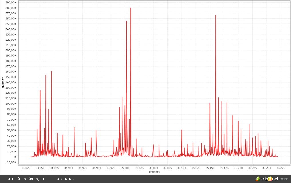Объемы на споте сегодня легли очень оригинально, 3 зоны активности, главная в районе 35 рублей. Видимо, все же встречали. Конечно, теперь нужно увидеть подтверждение обратный импульс ниже 35 рублей: